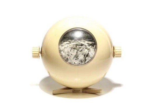 So, De Bono designed a way to encourage non-linear thinking. He came up with something called a “Think Tank”. It was a sphere that looked kind of like a Magic 8-ball.
