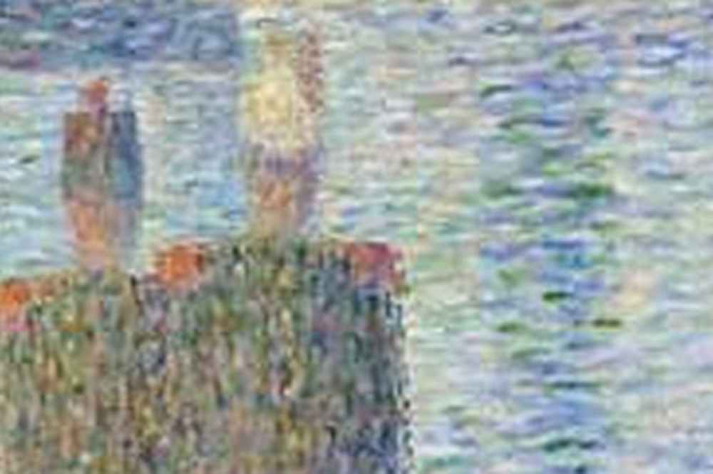 For example, when you look at a pointillist painting up close, all you see are dabs of color: